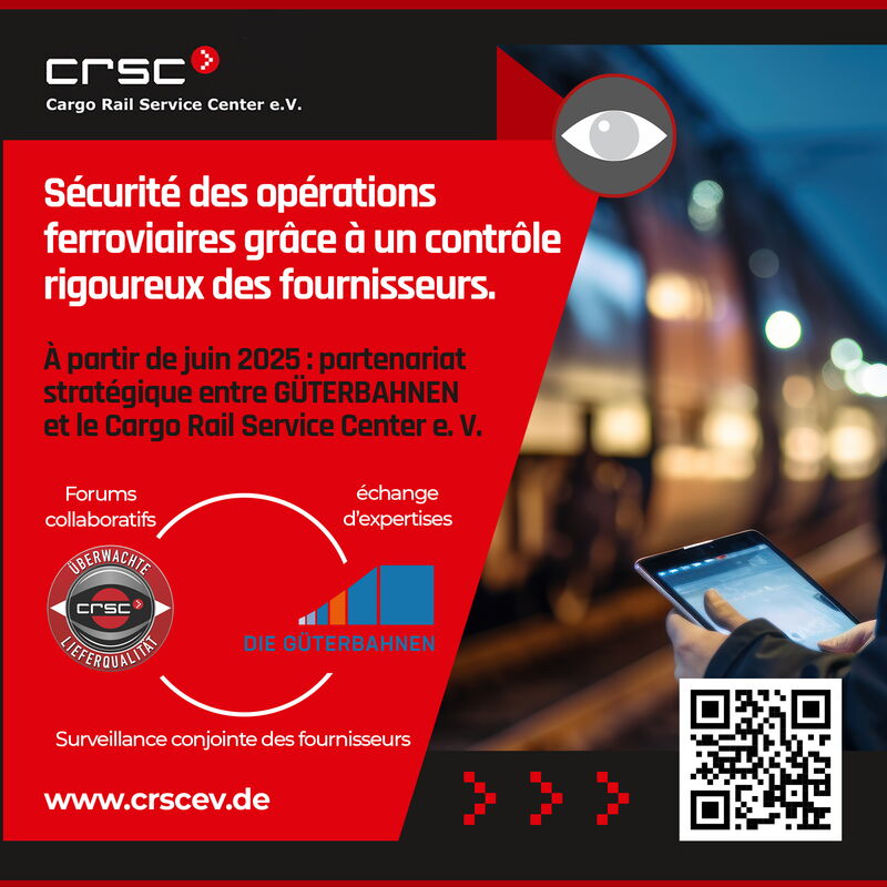 À partir de juin 2025, les membres de GÜTERBAHNEN pourront également profiter de ce système à moindre coût, car le CRSC coopère avec GÜTERBAHNEN et intègre ainsi la « coopération surveillance des fournisseurs » de GÜTERBAHNEN dans la « surveillance des fournisseurs » du CRSC.